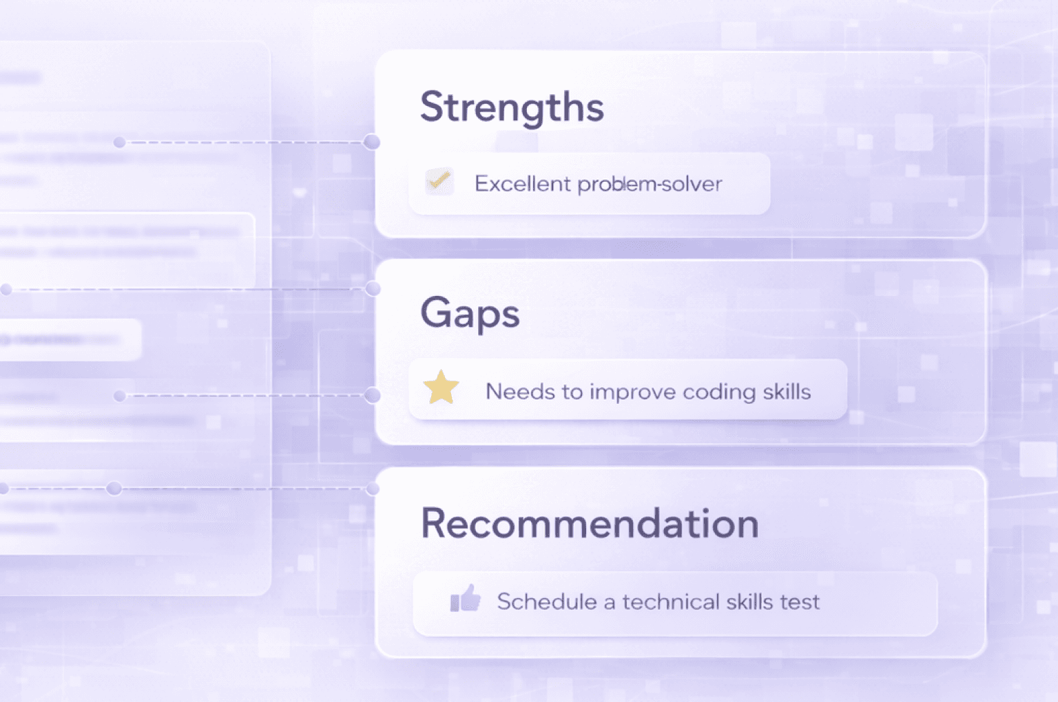 Get structured summaries, strengths, gaps, and recommendations, without sitting through interviews yourself.